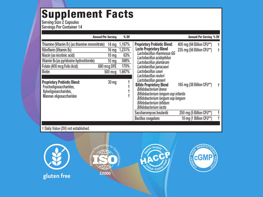 Our Supreme Immunity formula contains FOS -low-calorie, non-digestible, short-chain fructooligosaccharides, which can be found in some fruits, vegetable and grains. After being consumed, FOS move to the large intestine, where they serve as food for good bacteria, supporting their growth and colonization of the GI tract. FOS also support the production of fatty acids, and maintain the growth of the intestinal epithelial cells the microflora balance in the colon2.* They selectively enhance the survivability and reproduction of probiotic strains in Supreme Immunity, supporting their beneficial effects on the immune system3.*