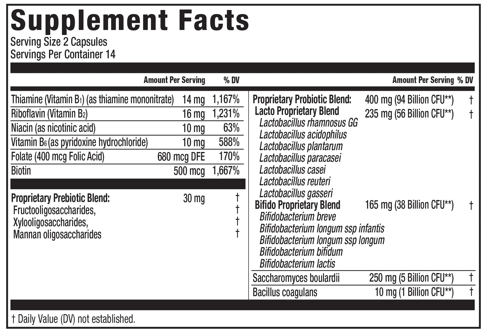Probiotic bacteria are critical for your healthy digestion, maintenance of intestinal lining, support of proper intestinal motility and participate in the detoxification process and support immune health.*