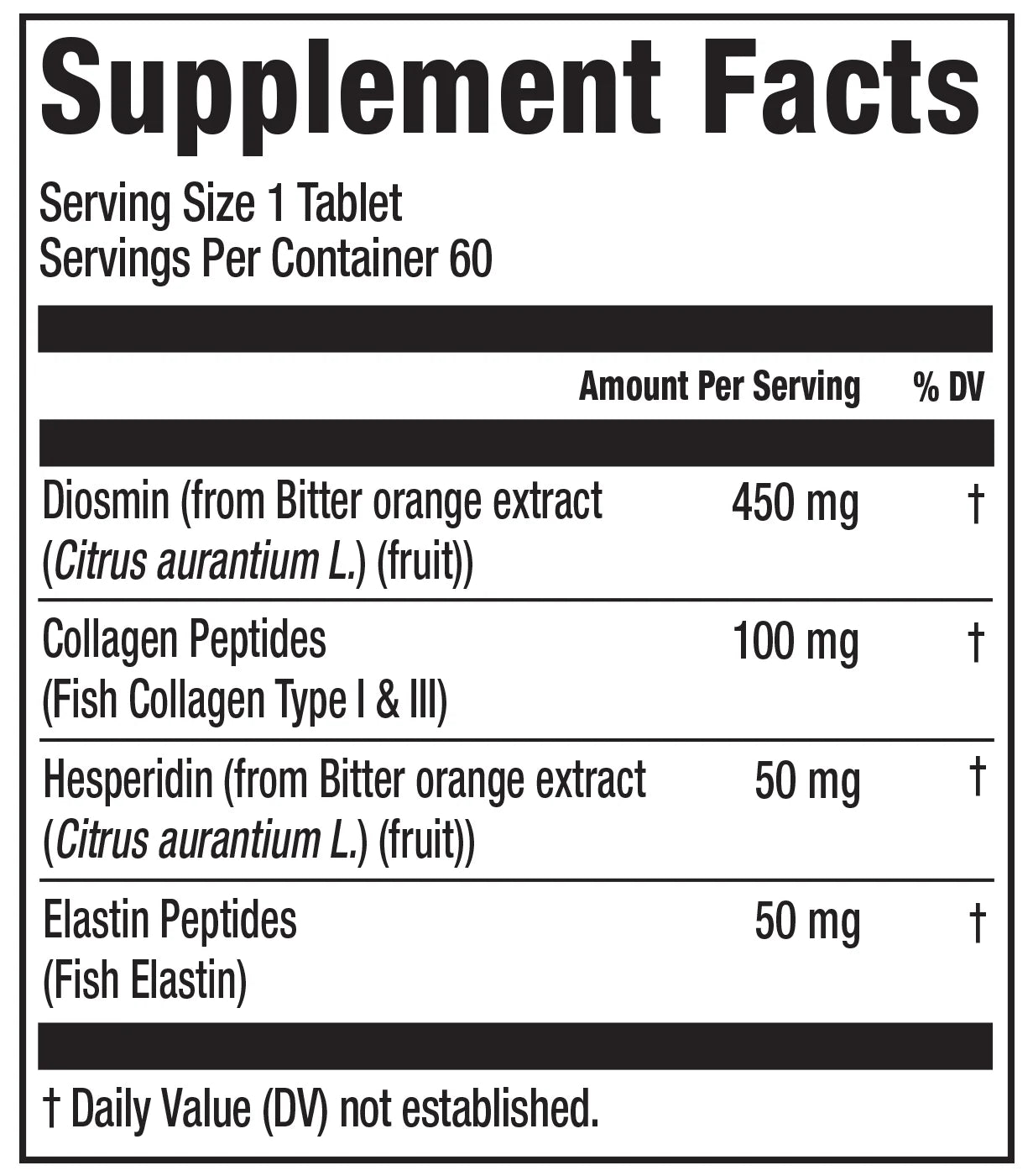 Supreme Veins Diosmin and Hesperidin are micronized, reducing-nutrient particle size for better absorption and efficacy.* Supreme Veins contains also collagen type III and elastin peptides, which help promote strong blood vessels19,20.*
